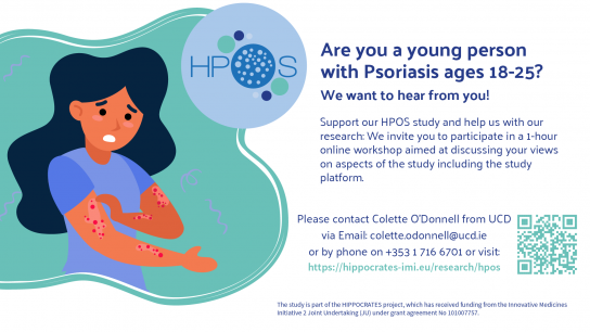 As a younger person with psoriasis (aged 18-25), the HIPPOCRATES study invites you to participate in a 1-hour online workshop aimed at discussing your views on aspects of the study including the study platform. We don’t know why some people with psoriasis develop PsA and some do not. If we could identify very early those psoriasis patients at increased risk of developing PsA, it is possible that we could prevent it from occurring