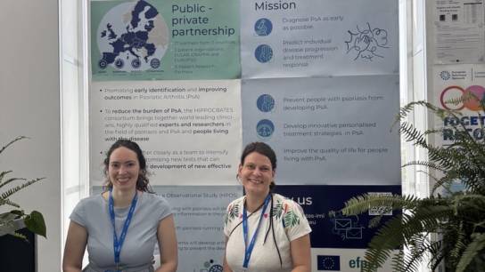At a dedicated booth in the Non-Profit Organisations Exhibition area, HIPPOCRATES representatives engaged with congress participants to share updates on project activities and introduce the HIPPOCRATES Prospective Observational Study (HPOS) - a key initiative aimed at improving early diagnosis and personalised care for people living with PsA. Nina Weiler (EURICE) and Patricia Riedlova (University of Glasgow) were on site to present the project and facilitate discussions with attendees.